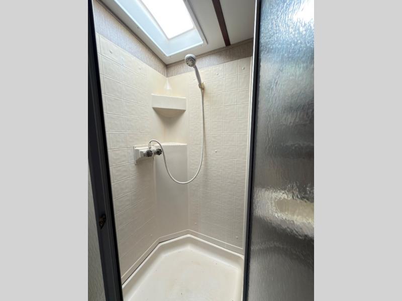 Head left from the main entry door and find yourself in the kitchen where you can easily prepare and cook food for your family. There is a three burner range, large kitchen sink, and overhead storage along the curb side. Across the room find a refrigerator. There is also a pantry for dry good storage next to a linen cabinet that is directly across from the bathroom door.