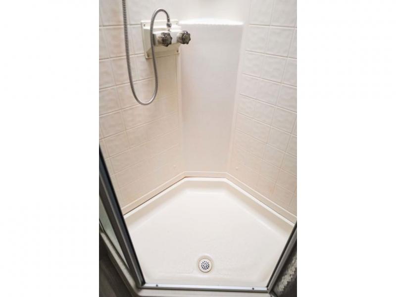 Head left from the main entry door and find yourself in the kitchen where you can easily prepare and cook food for your family. There is a three burner range, large kitchen sink, and overhead storage along the curb side. Across the room find a refrigerator. There is also a pantry for dry good storage next to a linen cabinet that is directly across from the bathroom door.