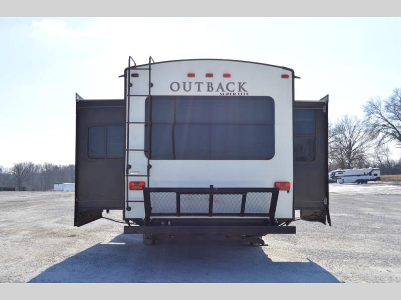 This Keystone Outback Super Lite 298RE travel trailer offers a spacious retreat while you camp, and this one features a rear entertainment area with loads of space because of dual opposing slides in the living area. There is also a third bedroom slide for added space, plus all the amenities you need to enjoy time traveling.
