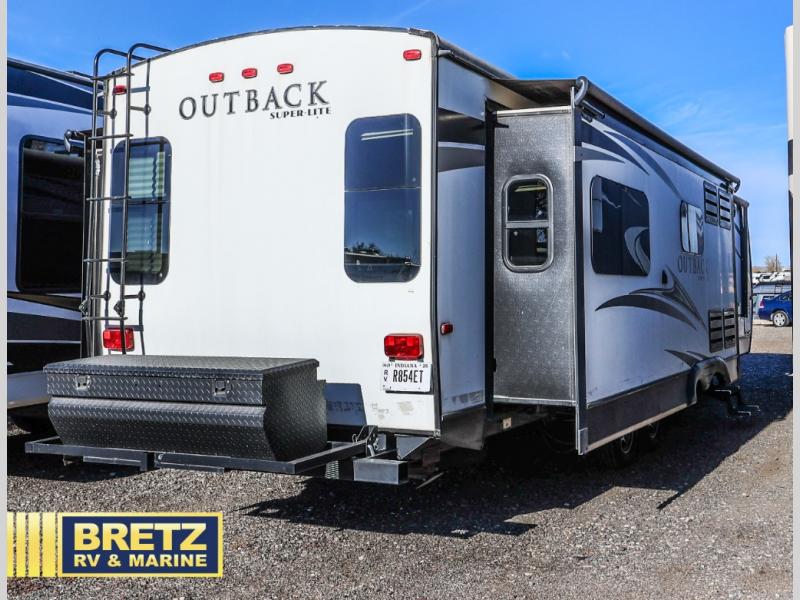This Keystone Outback Super Lite 326RL travel trailer offers a rear living area with a full wall entertainment center, triple slides for added interior space, a king size bed, plus so much more!