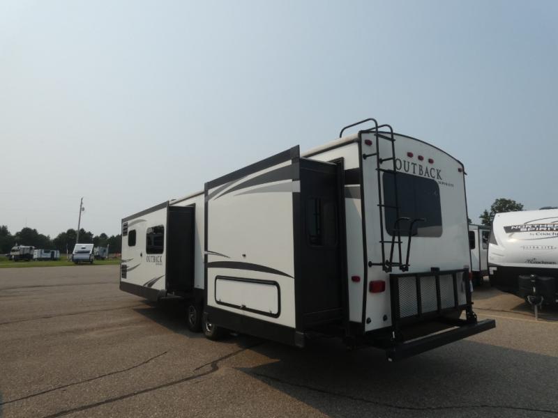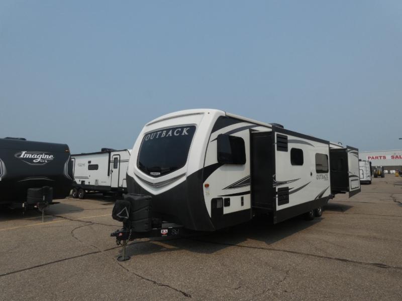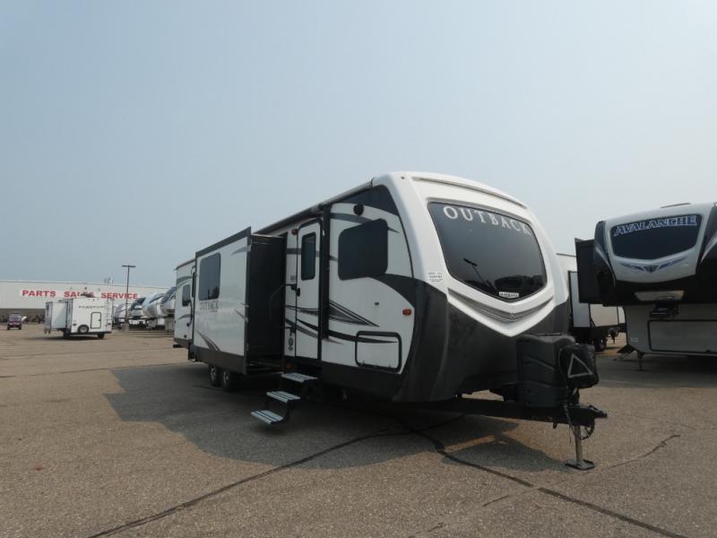 Come enjoy camping in your very own triple slide out double entry door travel trailer. This 332FK Outback by Keystone RV features a PanaView window in front and plenty of room to entertain a few guests while you are away from home. This travel trailer is ready to set out to new destinations, are you?