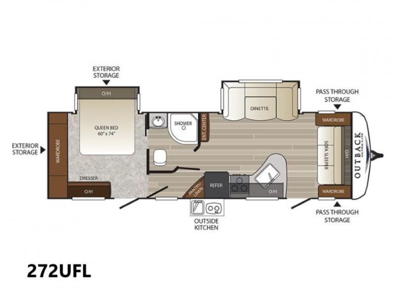 It's time to take your trips up a notch with this Keystone RV Outback Ultra Lite travel trailer. Model 272UFL provides sleeping for six, a front living area for relaxing and entertaining, dual entry for convenience, and an outside kitchen for the outdoor chef in the family, plus so much more!