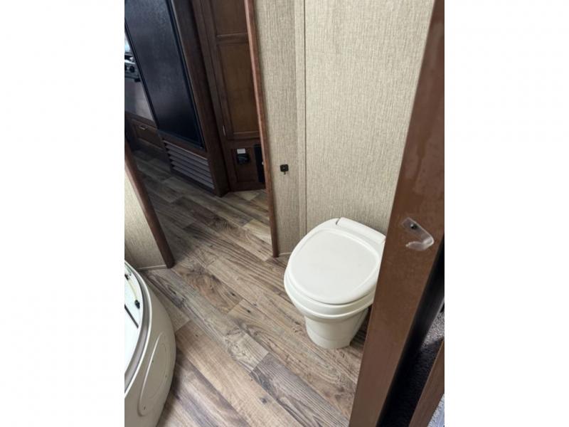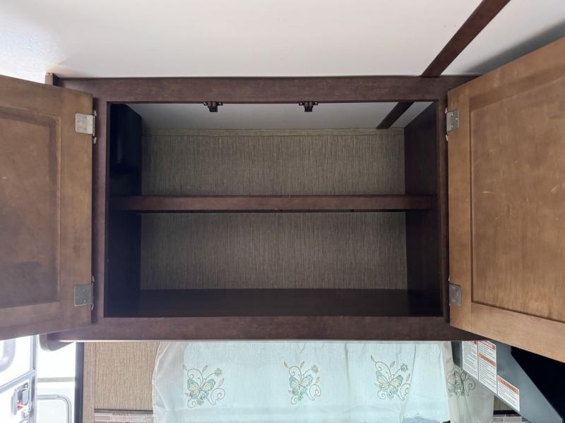There are overhead cabinets throughout, plus exterior storage and a pass through compartment outside for all of your gear. The outdoor chef in the family is sure to appreciate the outside kitchen including a sink, two burner cooktop, plus more!