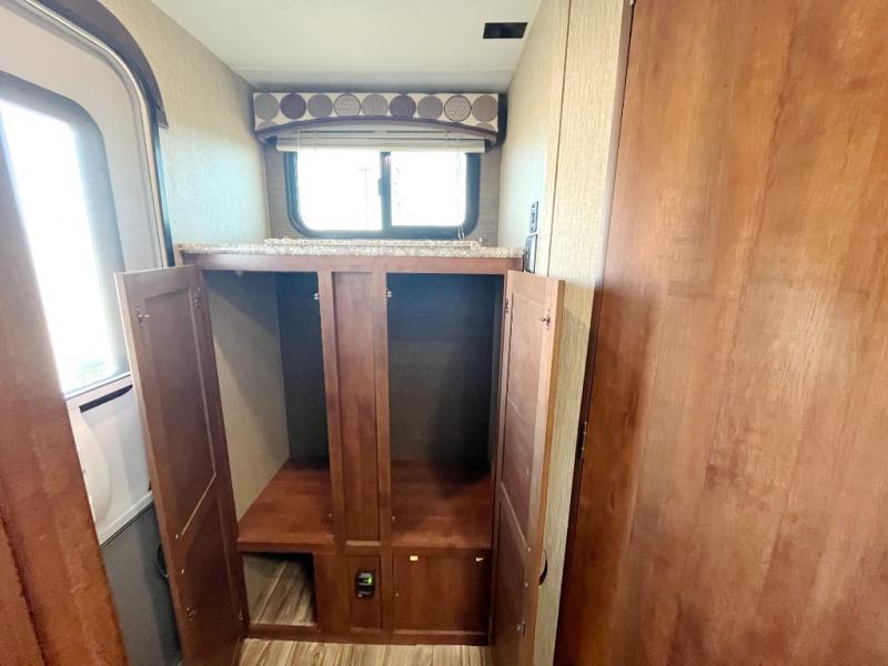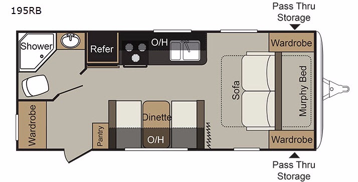 This Passport Express travel trailer model 195RB features a rear corner bath, a Murphy bed, and all the amenities you need to take your camping up a notch!