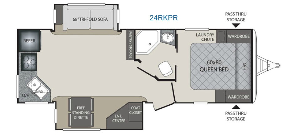 If you are looking for a rear kitchen layout, dual slides in the main living space, and a free standing dinette, then take a look inside this Keystone Premier Ultra Lite 24RKPR travel trailer.