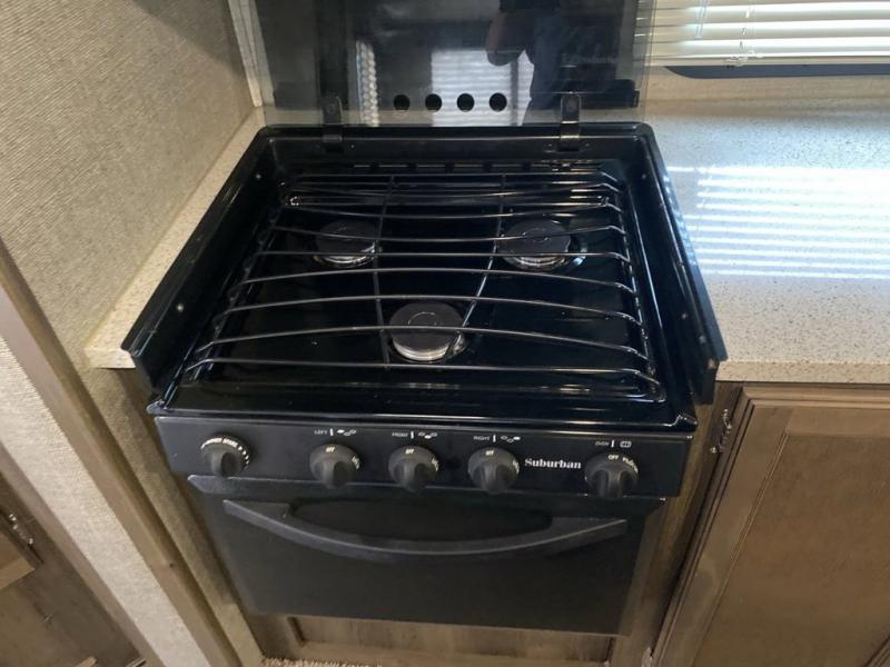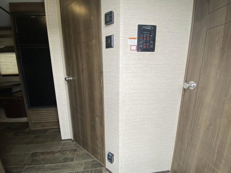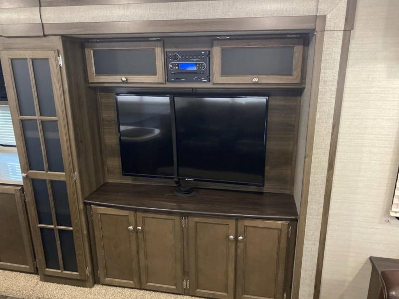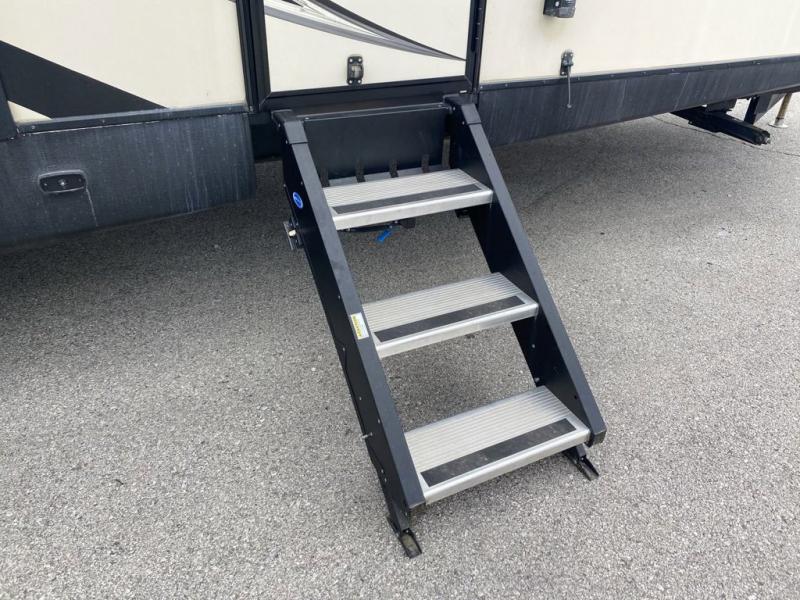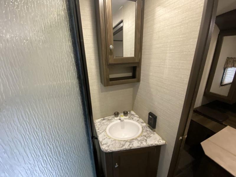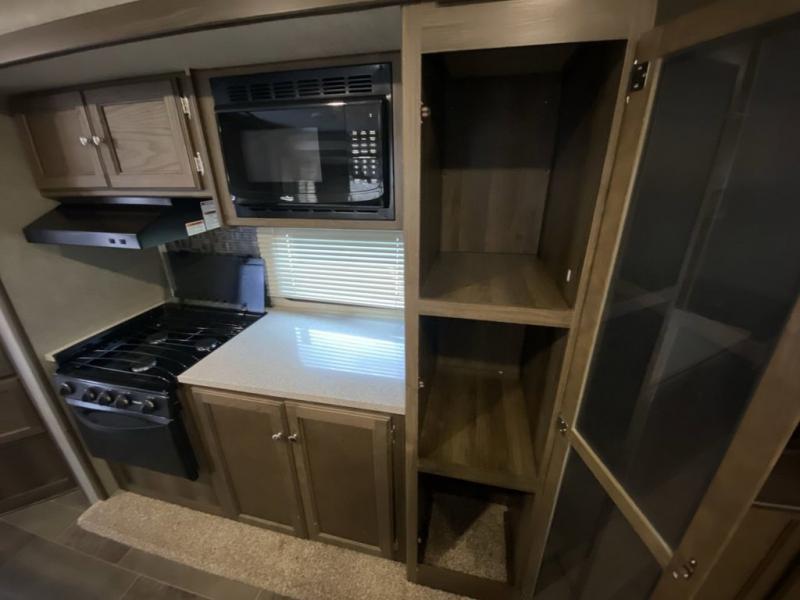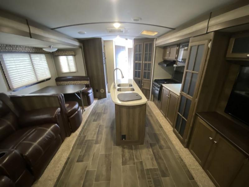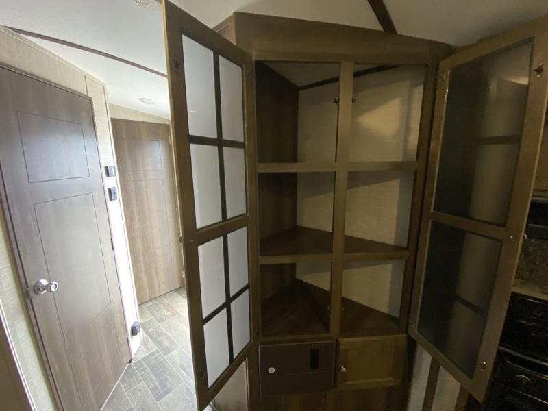 There is no lack of storage on the inside of this trailer, and the outside features a pass through compartment with access on either side, plus an outdoor kitchen, and so much more!