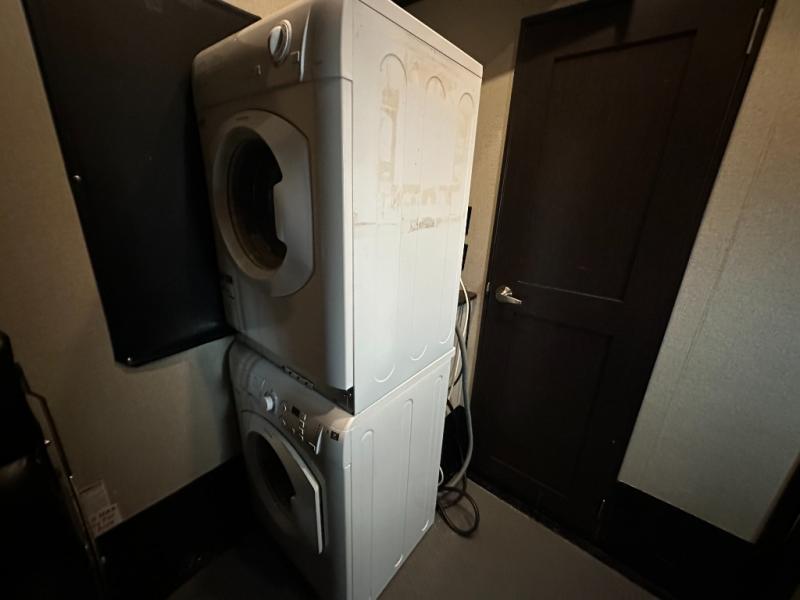 As you enter the main entrance to your right you can hang up your coat in the handy closet. Next there is an entertainment center along the outer bath wall facing the living and kitchen area to your left.