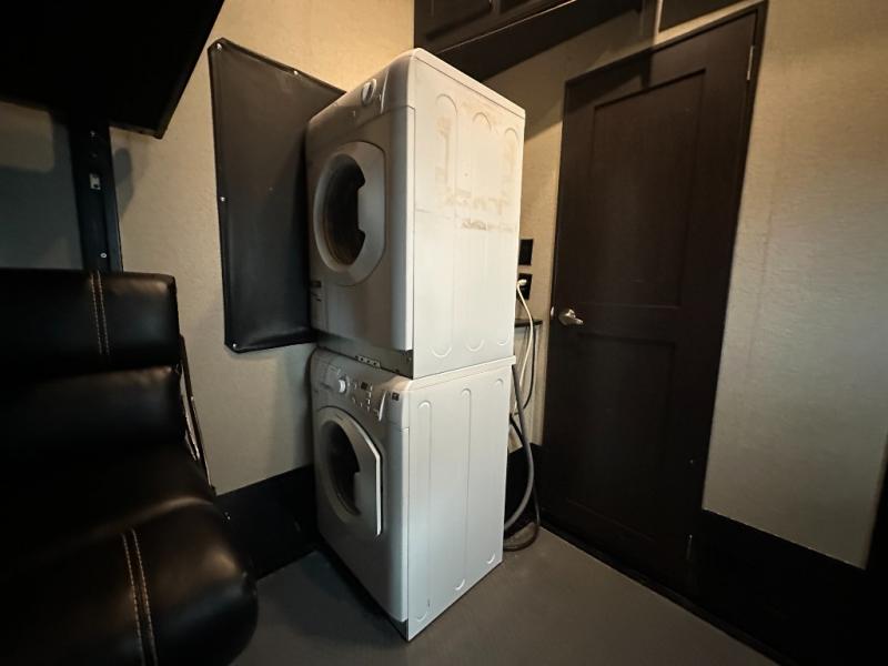 The 10' garage provides an electric bed with dual opposing sofas below, a side man door, and a ramp door for easy loading and unloading of your off-road toys. There are dual 30 gallon fuel tanks outside as well.