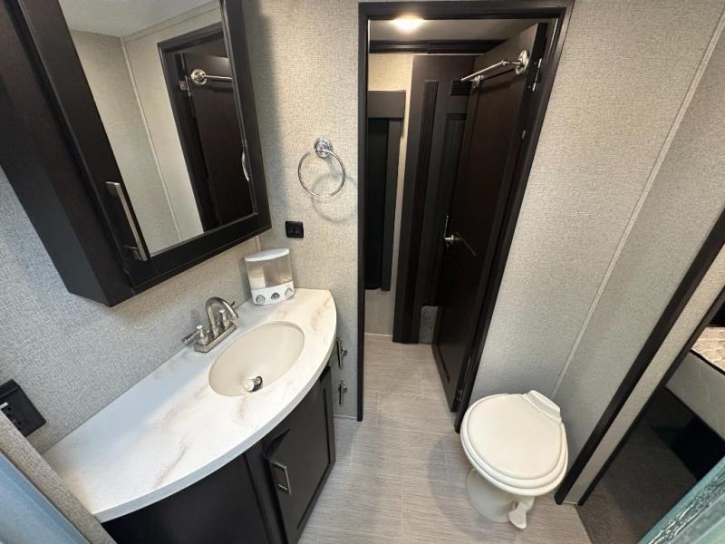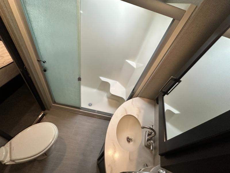 There is a convenient half bath with access from the living space as well as the cargo area.