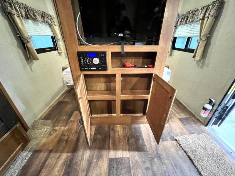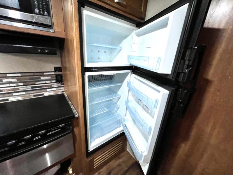 On the outside not only will you enjoy the entertainment center and refrigerator, but there is also a nice front pass-through compartment for all of your outdoor camping gear to be stowed away, plus more!