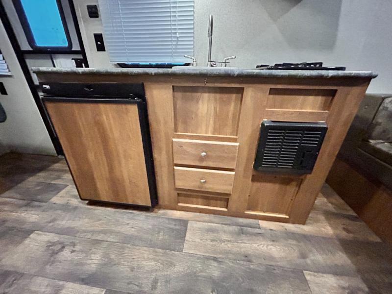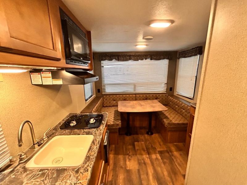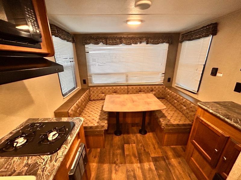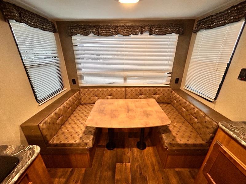 In the rear of this single axle unit there is a u-shaped dinette for meal time or when it's time to hang out and relax, the dinette can also be made into a bed, plus so much more!