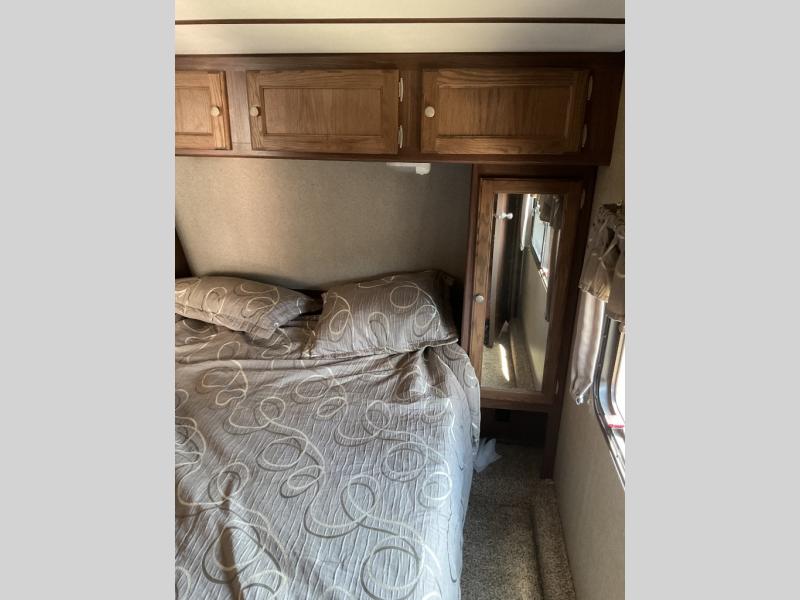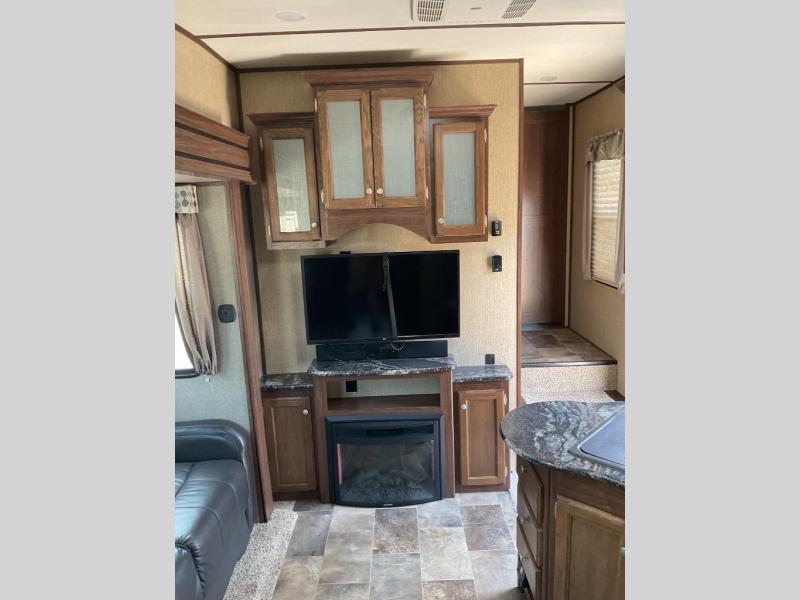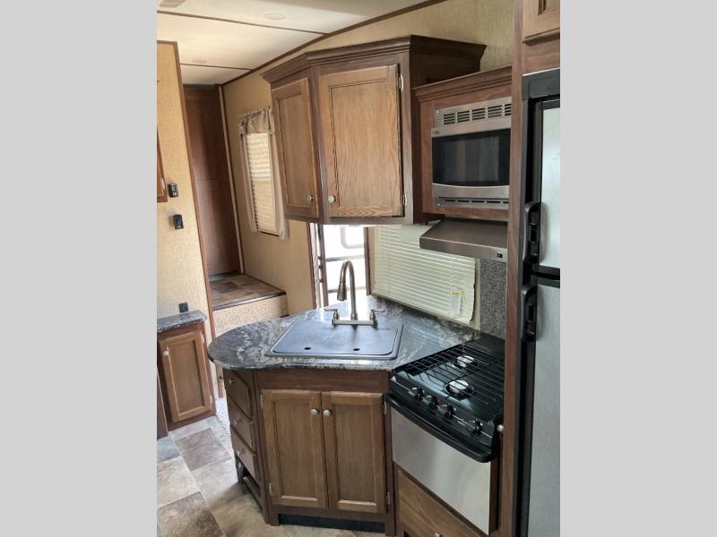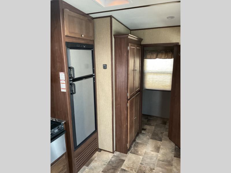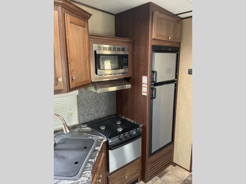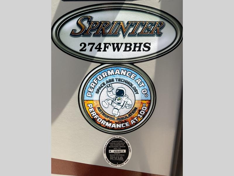 Keystone's Sprinter 274FWBHS fifth wheel with its wide body design has enough space for everyone thanks to a rear bunkhouse that the kids will love, a spacious living room with deep 42" slide, a fireplace, and more. There is even an outdoor kitchen for added convenience.