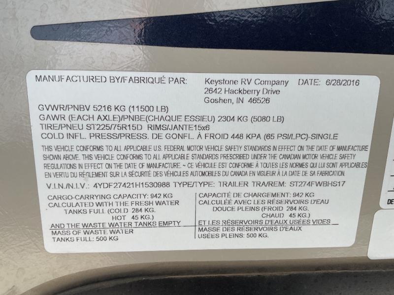Used 2017 Keystone RV Sprinter 274BHS Fifth Wheel