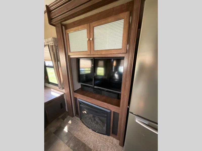 This Keystone Sprinter features a wide body design with triple slides which increases the size even more when all slides are fully extended. You will love the residential refrigerator, and the rear living layout with a cozy electric fireplace nearby too.