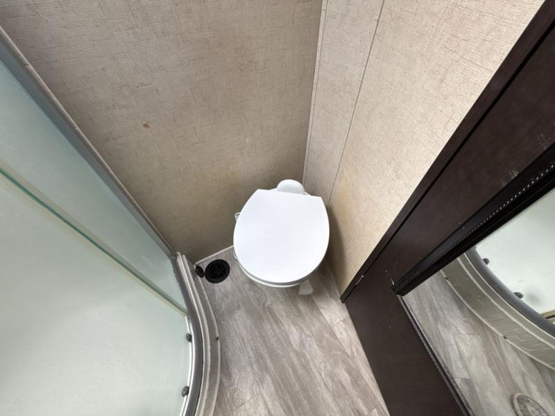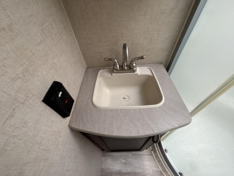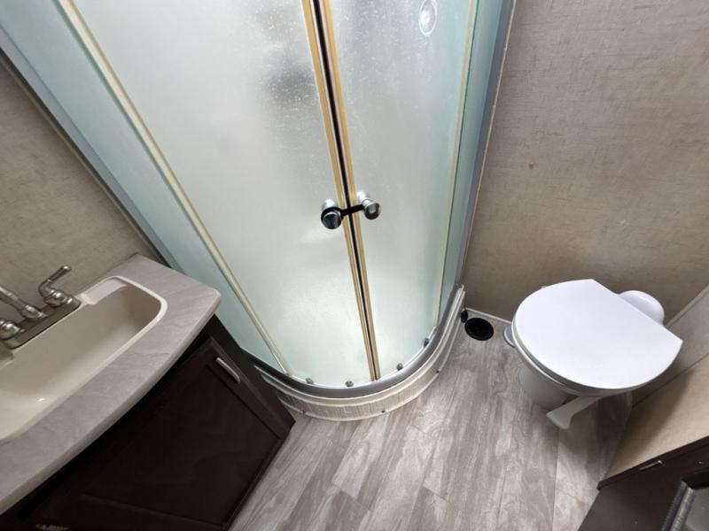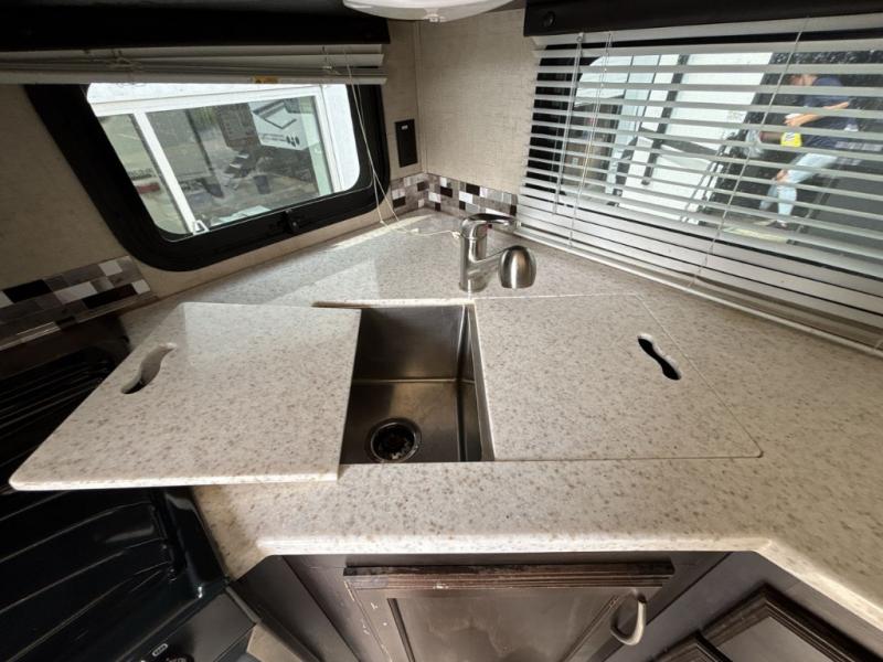 You will love the dual opposing slide outs in the kitchen/living area. When the slide outs are extended, it really helps to open up the floor space. To the right of the entry door you will find a slide with a sofa or choose an optional sleeper sofa. Adjacent to the slide out there is a coat closet and an entertainment center. Along the road side you will find a large u-dinette where you can enjoy your meals and at night convert this area into additional sleeping space.