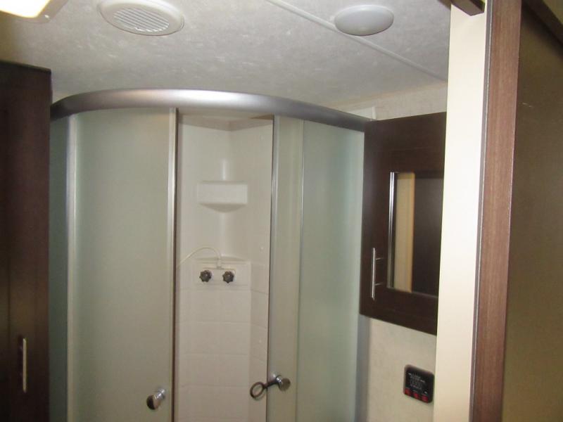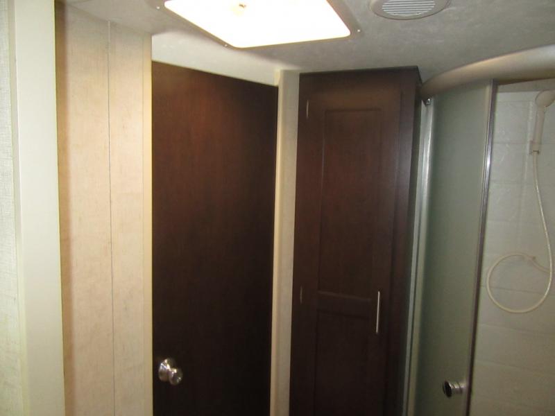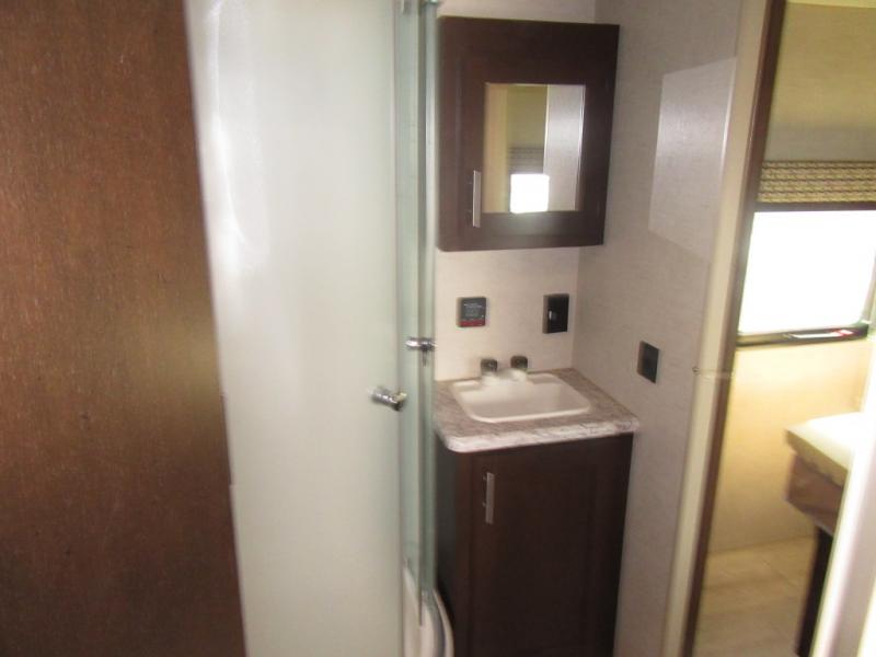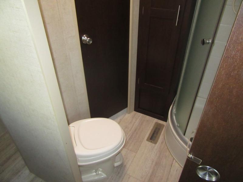 As you step inside you will find the bathroom almost straight ahead. In the bath there is a radius shower, linen storage, sink with medicine cabinet, and a toilet. Plus there is a second entry door from the bedroom into the bath as an added convenience.