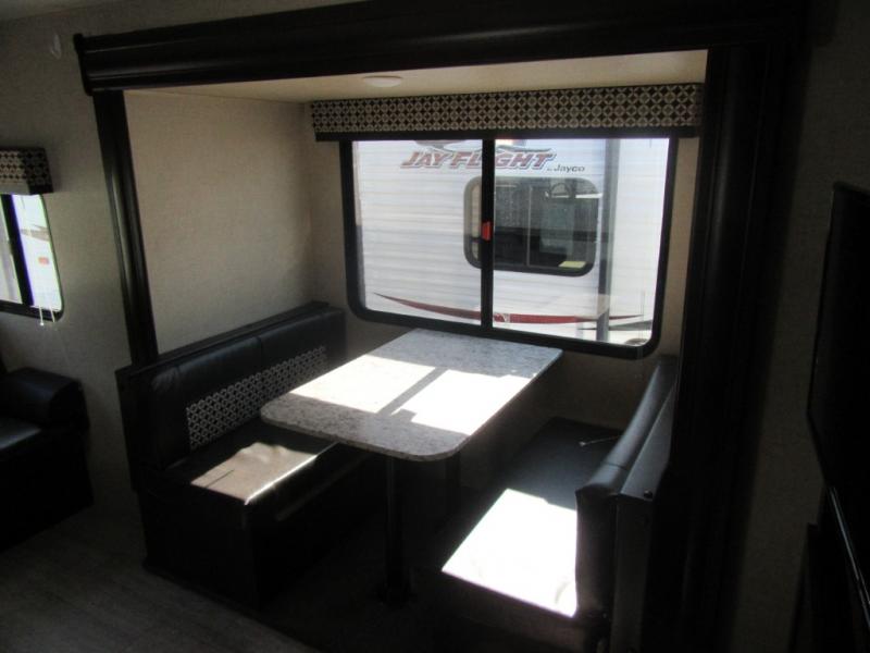 Along the rear wall there is a 70" sofa. Adjacent to the sofa you will enjoy the booth dinette slide out, and the entertainment center along the interior wall. This is a great area for visiting with family and friends, plus provides extra sleeping space.
