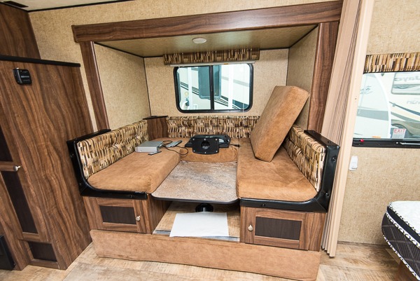 There are plenty of overhead cabinets throughout the inside of the travel trailer, as well as a large pass thru storage.