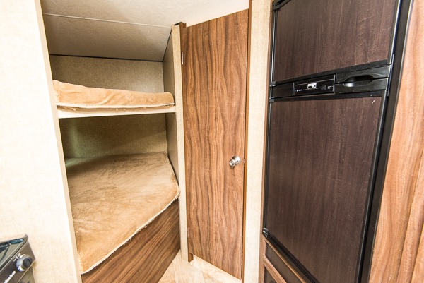 A set of double size 50" x 75" bunks are next to the bath.