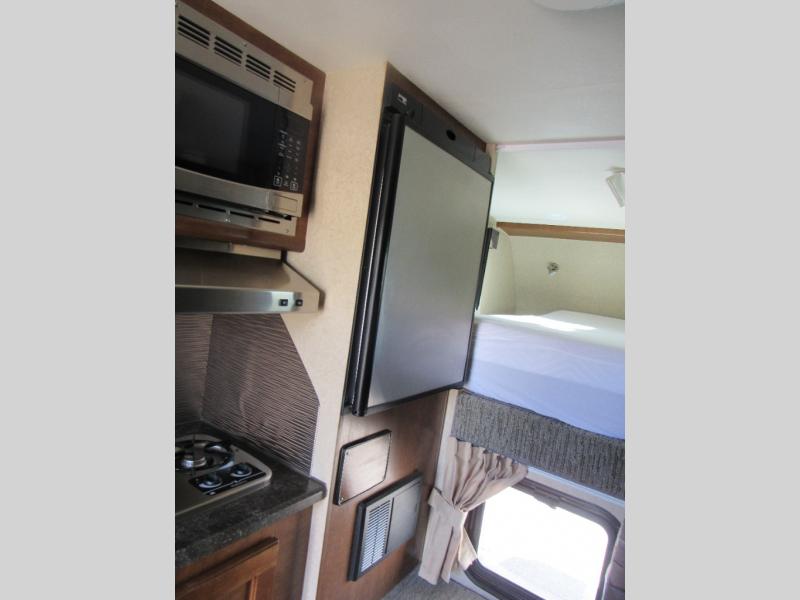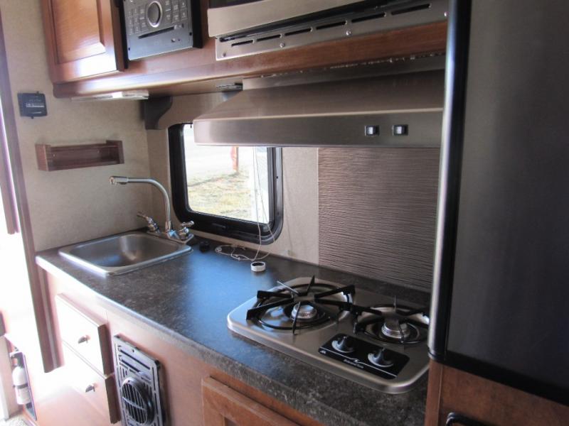Cook light meals and snacks easily in this Lance 865 kitchen which offers a two burner range, a pantry with adjustable shelves, and a 3-way 3 cu. ft. refrigerator and single sink with high spout faucet. You can add a microwave oven, a slide out pantry, or a sink cover if you like.