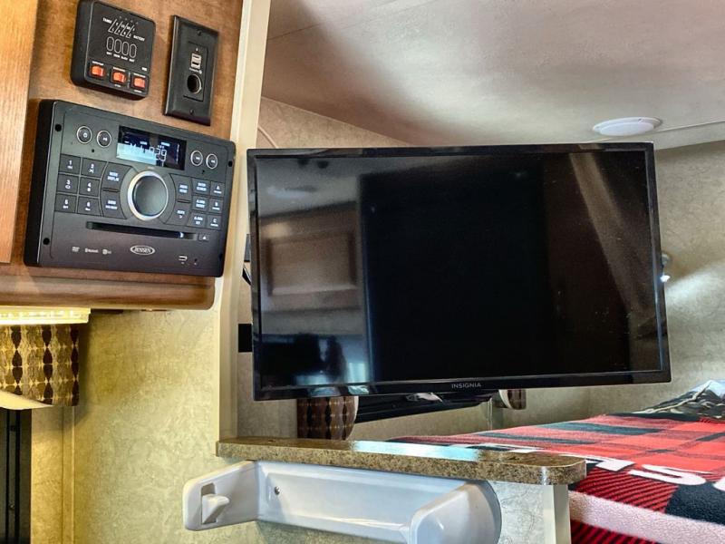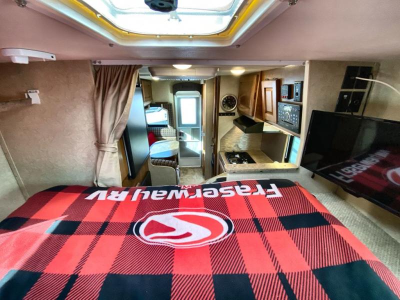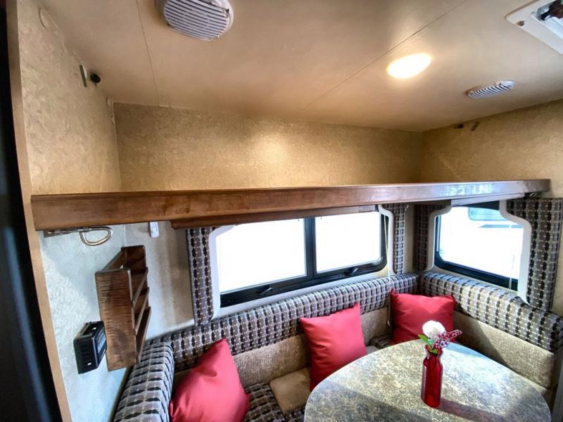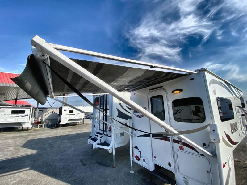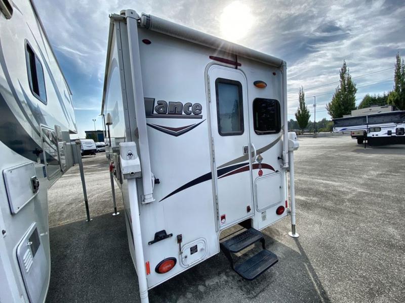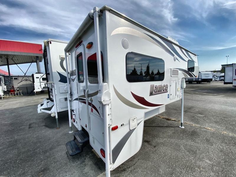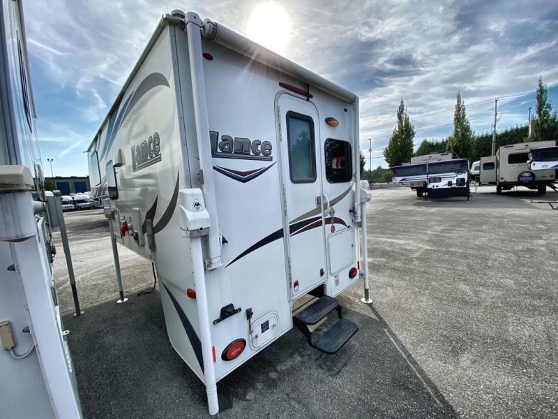 An easy camper to carry on your short bed series truck is this Lance 865 truck camper. It offers a spacious wet bath, a u-shaped dinette, and a deluxe queen size mattress.