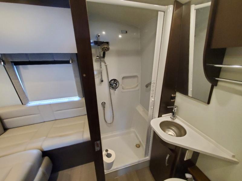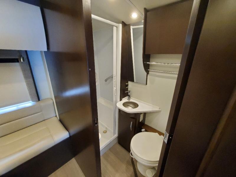 You can also choose in place of the rear corner bed a tri-fold electric sofa for ample daytime seating which converts to sleeping space easily at night.