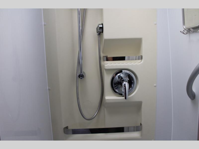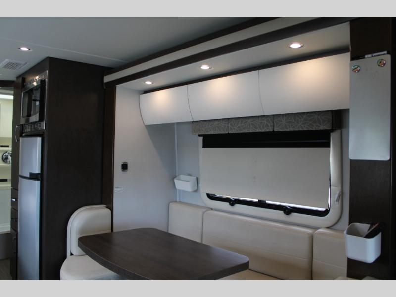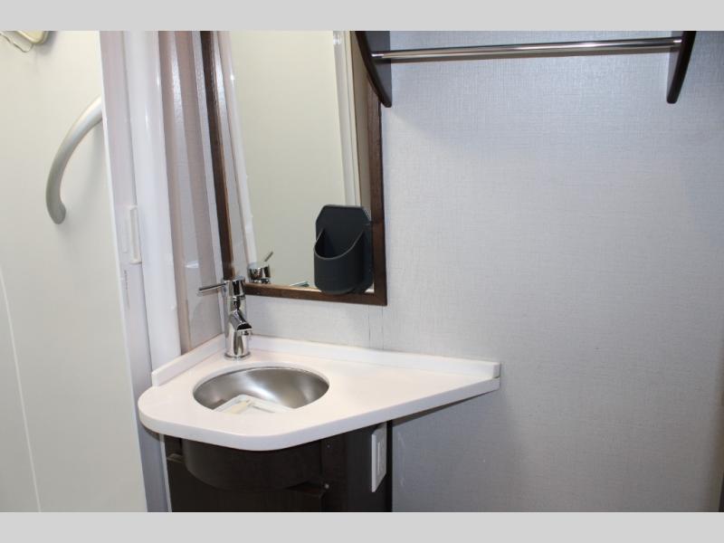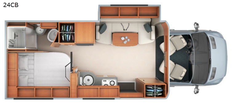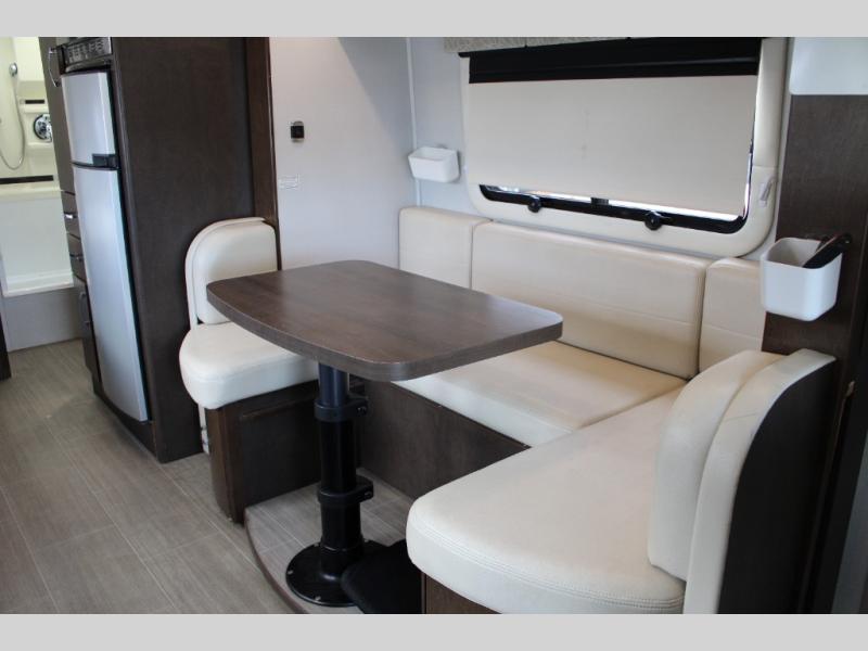 Inside this 24CB Unity model you will quickly see just how convenient your next camping trip could be. The front driver and passenger seats swivel to the rear for added seating when parked. There is a slide out booth dinette, or optional u-dinette, with seat belts for safety while moving down the road, and overhead storage as well.