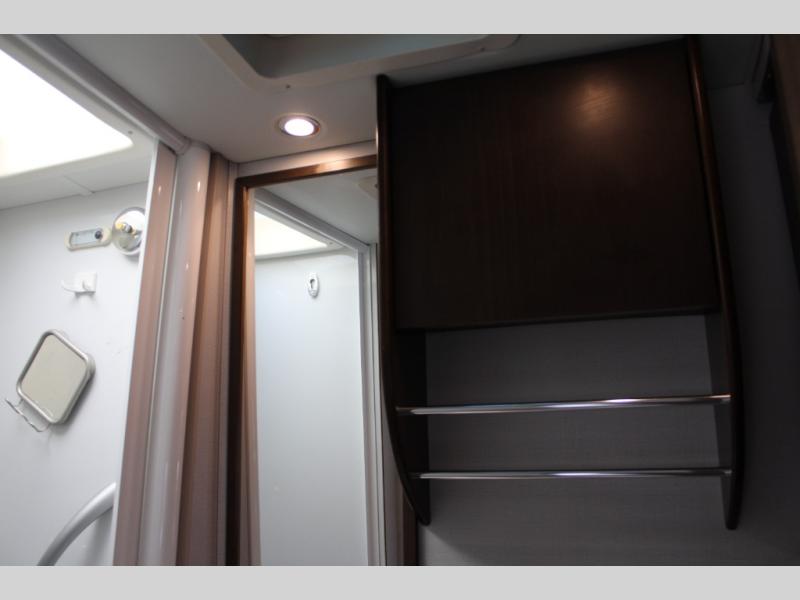 The rear right hand corner offers a convenient bath with shower, toilet, and round sink, plus overhead storage too. There is also another wardrobe cabinet for hanging clothes, plus so much more!