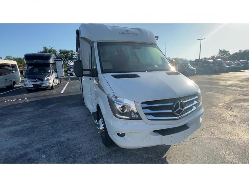 This Leisure Travel class B+ diesel unit 24MB offers a single slide out with a queen size Murphy bed included, a 39" LED TV, curved European cabinetry throughout, and a bathroom that will make any class A owner envious.