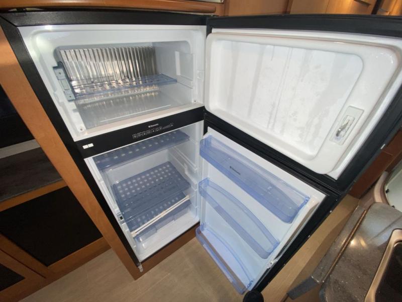 Step inside and notice two lounge chairs straight ahead with a table between the two. The driver and passenger cab seats also swivel to create more of a conversation area. At night lower the Murphy bed down to create a comfortable space to sleep.