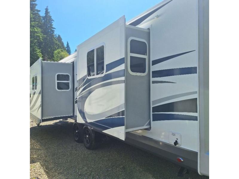 Northwood Mfg. offers the Arctic Fox model 29L Silver Fox Edition travel trailer featuring dual entry, double slides, and a front kitchen.