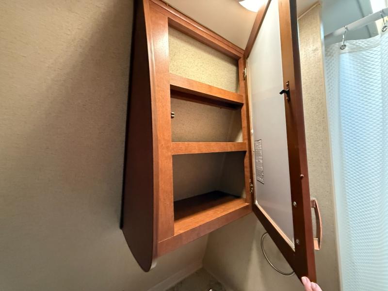 There is a full electric lift bed at the rear. You may choose to add an optional second bunk, a convert-a-U dinette or a reversible rear lounge.