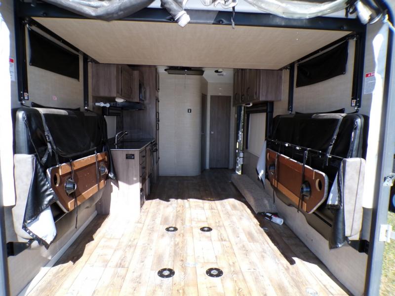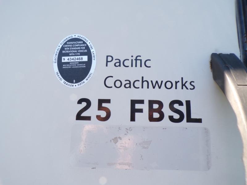 Enjoy any off-road adventure in this Pacific Coachworks Rage'n toy hauler travel trailer model 25FBSL. This unit features a large cargo area that is 6'1" on the road side and 14' on the curb side. It also features a private front bedroom, and additional sleeping in the rear of the unit with the drop down electric bed and sofas.