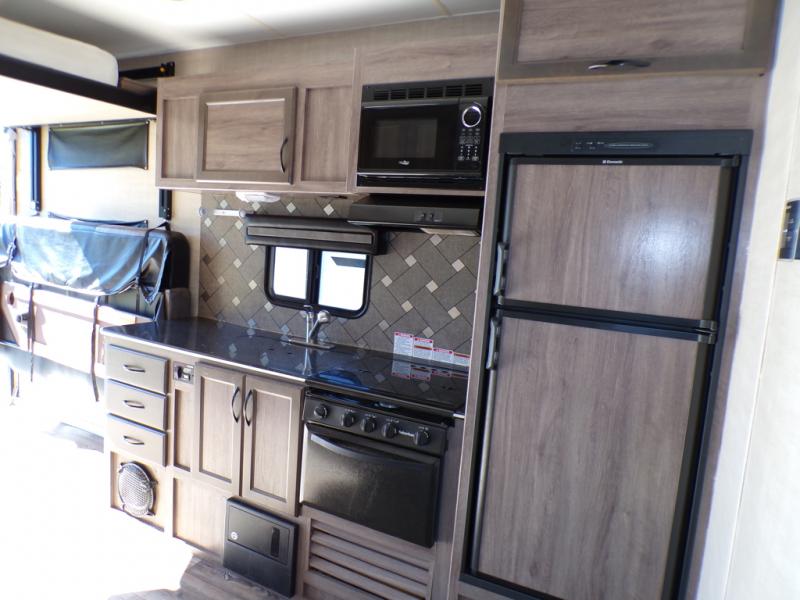 Inside you will find plenty of storage in overhead cabinets throughout, plus the kitchen includes lower cupboards and drawers also. There is a refrigerator, a three burner range with microwave oven, and double sink which makes cleaning up a breeze.