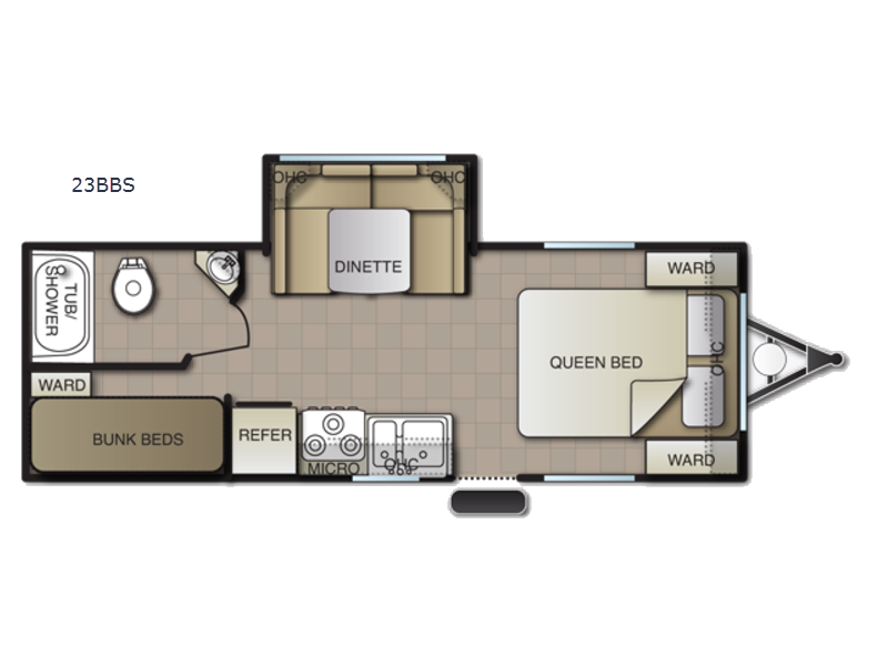 Your kids will enjoy the bunk beds which are in the rear corner of the trailer. Next to the bunks there is a wardrobe perfect for storing their clothing.