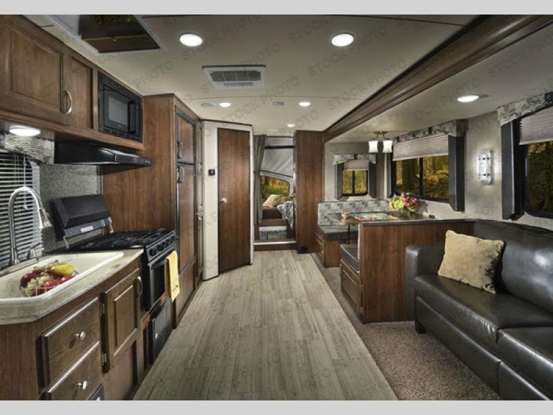 The slide out features a 42" x 69" booth dinette, and 68" sofa sleeper with overhead storage too.