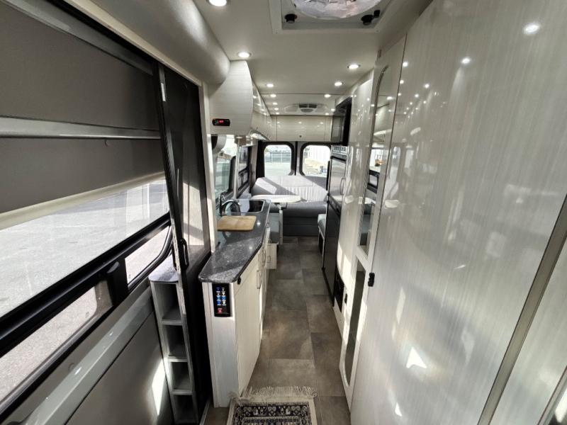 The Plateau TS class B diesel motor home by Pleasure-Way provides luxury including kitchen amenities necessary to make snacks on the go, and a wet bathroom plus an electric sofa that allows you to travel anywhere in comfort!