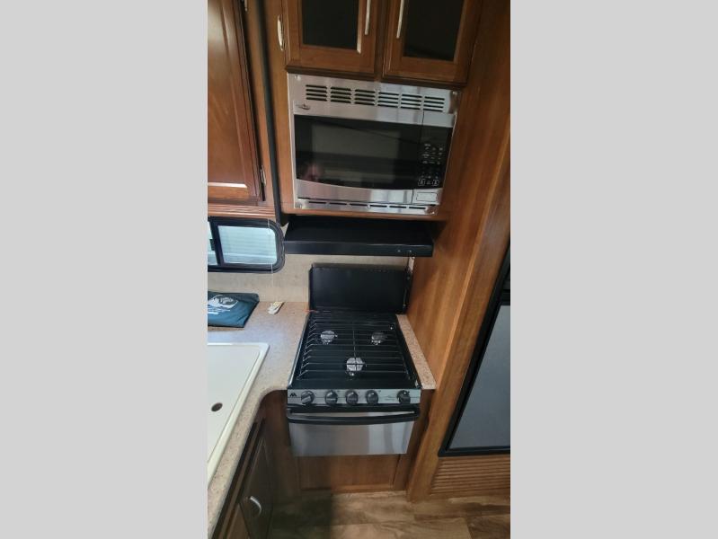 As you enter this Crusader LITE 26RE fifth wheel by Prime Time RV, you will see that the kitchen begins to the left of the entry door with a rear corner entertainment center providing hours of inside enjoyment in the combined space. Plus there is an outdoor kitchen as well.