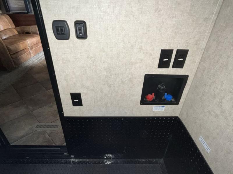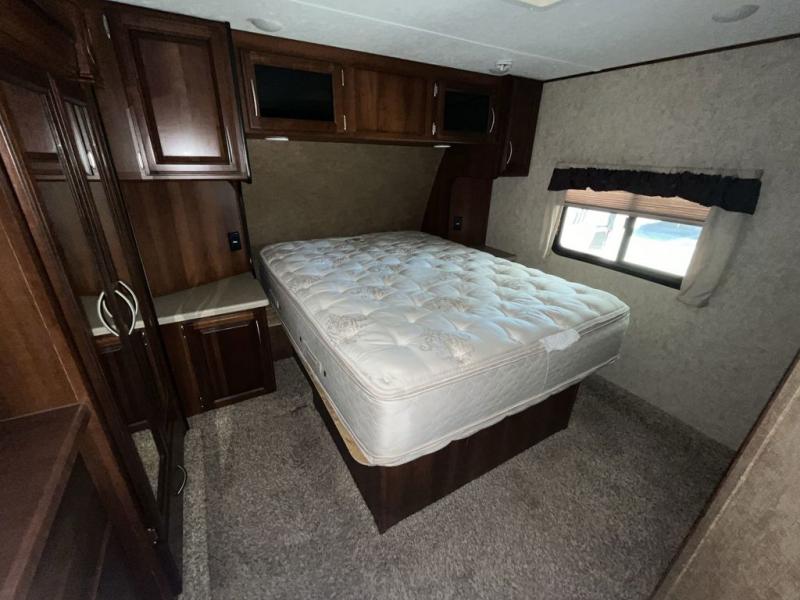 The front master offers a queen size bed with overhead storage, plus a slide out set of closets on either side of a chest of drawers for all of your clothing storage needs, plus so much more!