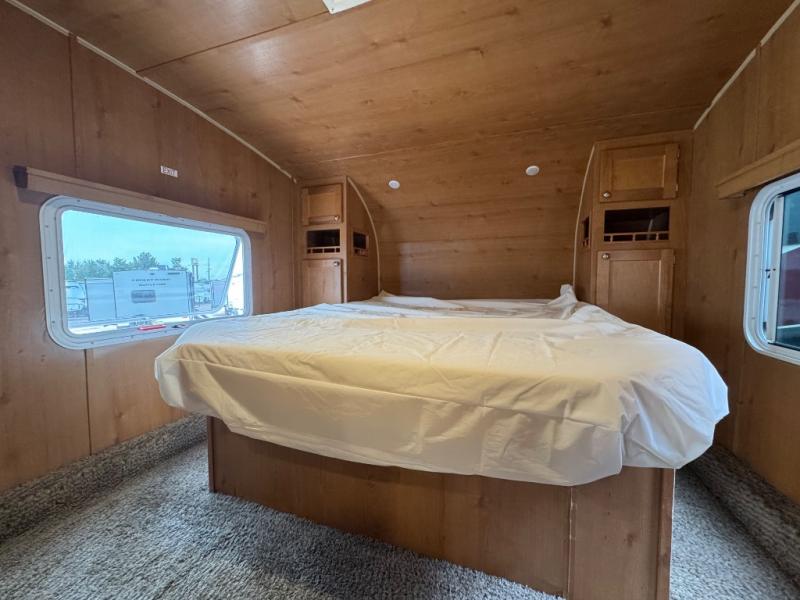 As you enter this fifth wheel, you will love how open and spacious the combined kitchen and living area are. Along the curb side there is a double sink, a two burner range, and a refrigerator, plus overhead cabinets for your dishes and things. To the right of the door there is a storage cabinet with drawers. Along the road side the slide out features a booth dinette with an overhead cabinets, plus a sofa. Both of these provide extra sleeping space if needed. The interior wall includes storage and a TV location for your inside enjoyment.