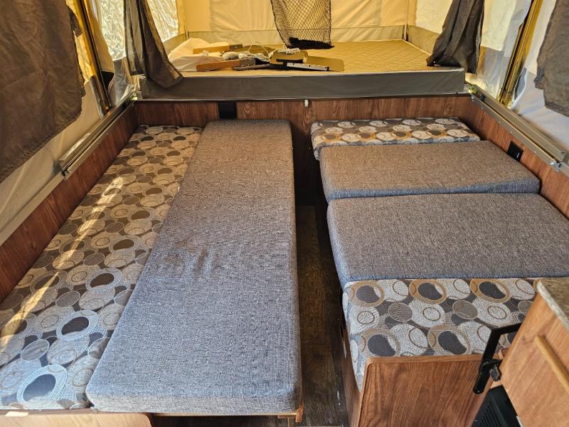 This pop-up offers surprising space and comfort in a compact package, ideal for families or couples looking to explore without the hassle of a full-size RV. With multiple sleeping options, indoor cooking, and outdoor enjoyment, it’s a perfect step up into the RV lifestyle!