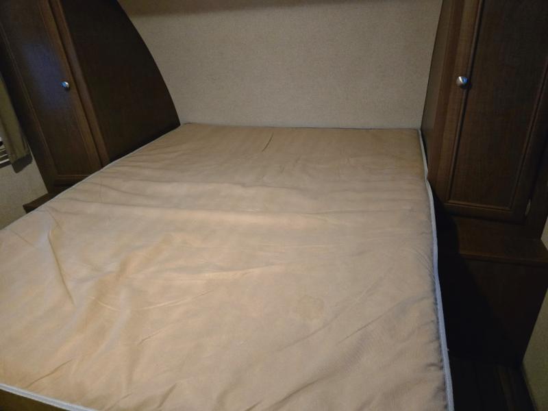 Back to the front you will find a private bedroom with a queen size bed, along with wardrobes on both sides, plus overhead storage too.