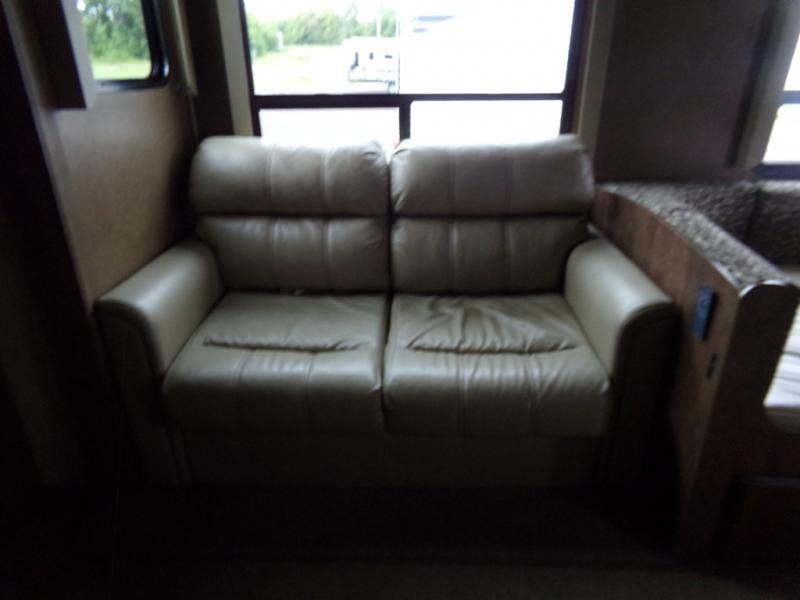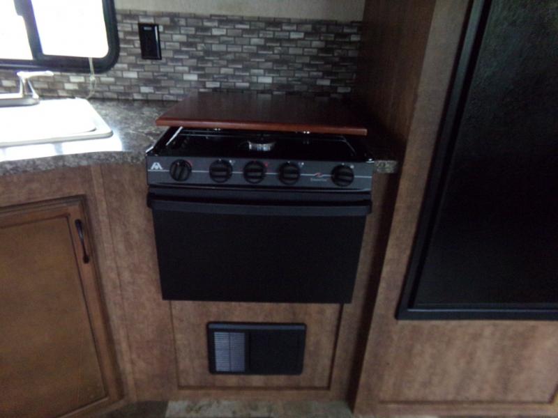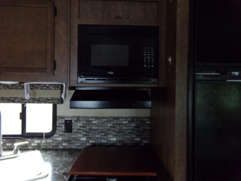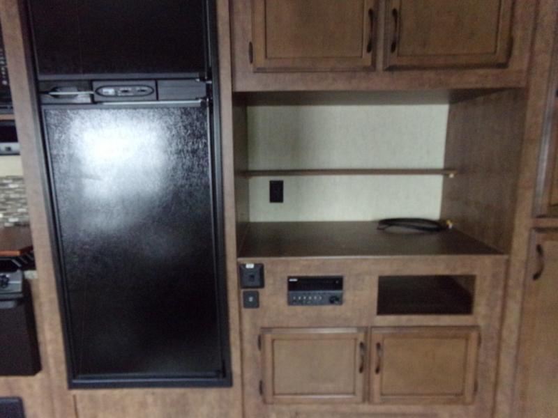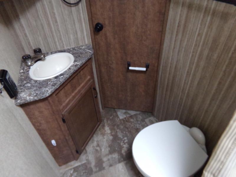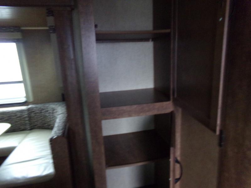 In the combined living/kitchen area you will love the extra space that the slide out offers. Within the slide out there is a u-dinette and a sofa with an overhead cabinet. You can choose a few different options in place of the sofa such as theater seating, a hide-a-bed, or a sleeper sofa. Adjacent to the slide out there is a large pantry.