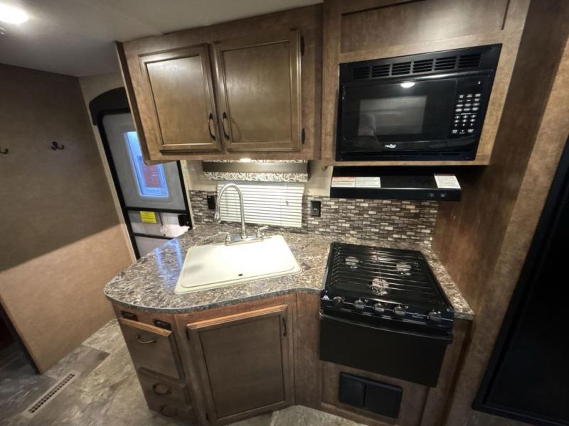 Sleeping space for seven people, a single slide out, plus an outdoor kitchen makes camping in the Autumn Ridge 29BHU travel trailer a dream come true!