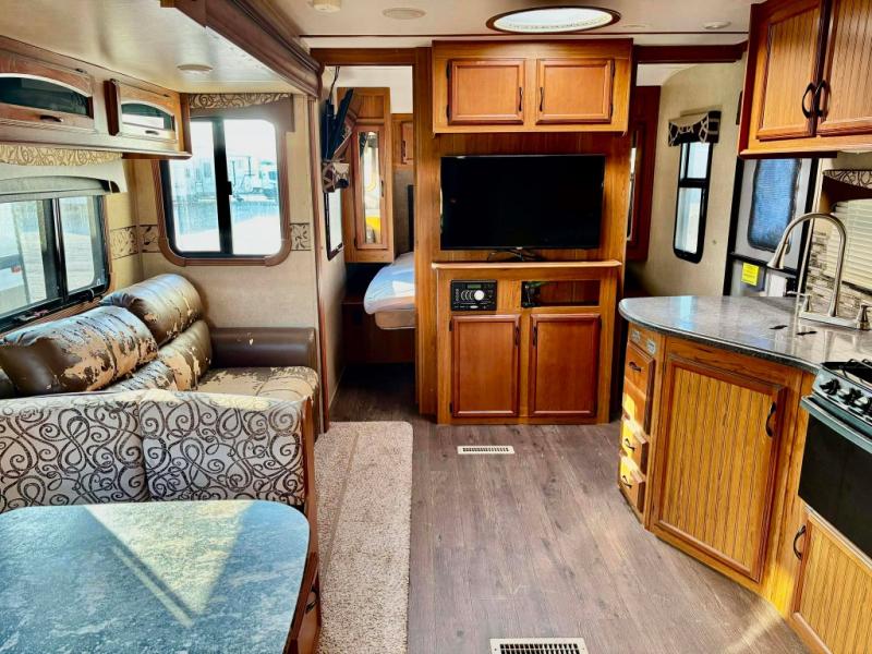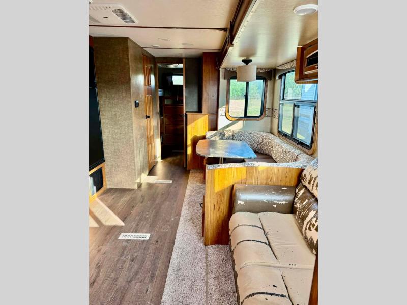 A slide out u-shaped dinette and sleeper sofa provide seating for mealtime or when you just want to relax and hang out. Both can be made into additional sleeping when the table is folded down and the sleeper sofa is pulled out.