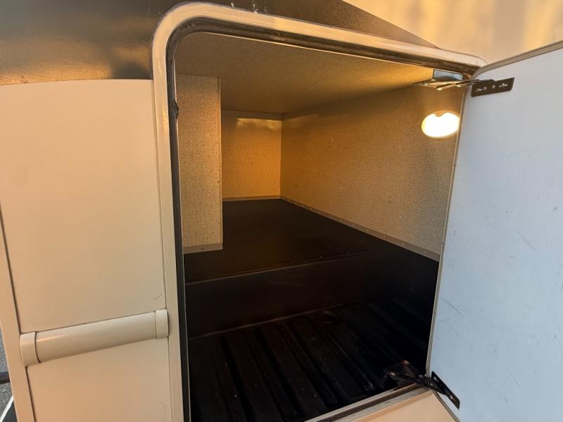The kitchen amenities provide what you need to create meals and snacks on the go. There is a three burner range with microwave oven, a single kitchen sink, and overhead storage along with a refrigerator found on the opposite side. There is also a pull-out pantry for your non-perishables.