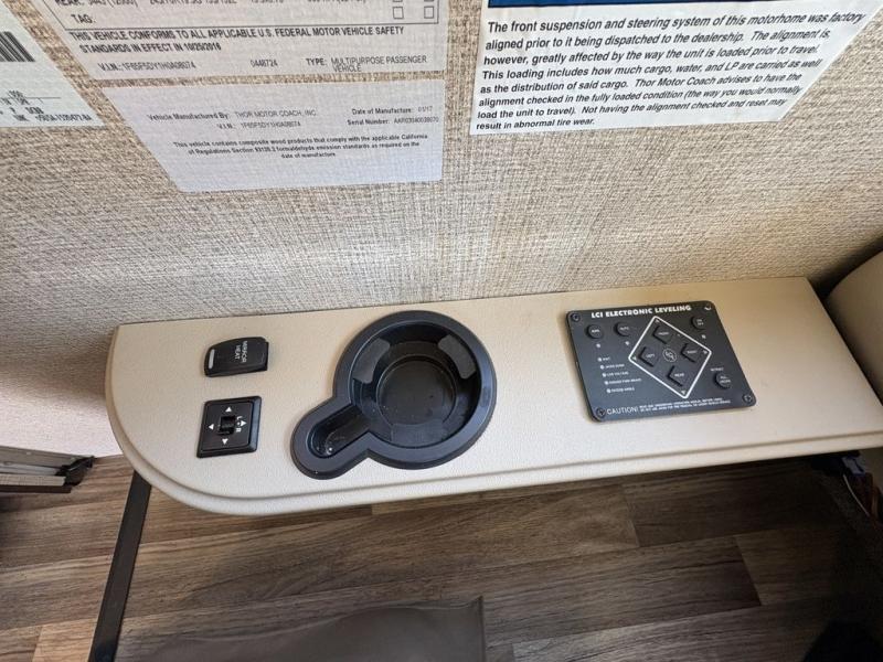 This A.C.E. 30.4 class A gas motorhome by Thor Motor Coach features a large slide for more interior floor space, and all the amenities needed for any road trip you take. There is even an exterior TV to watch the big game or movies under the stars!