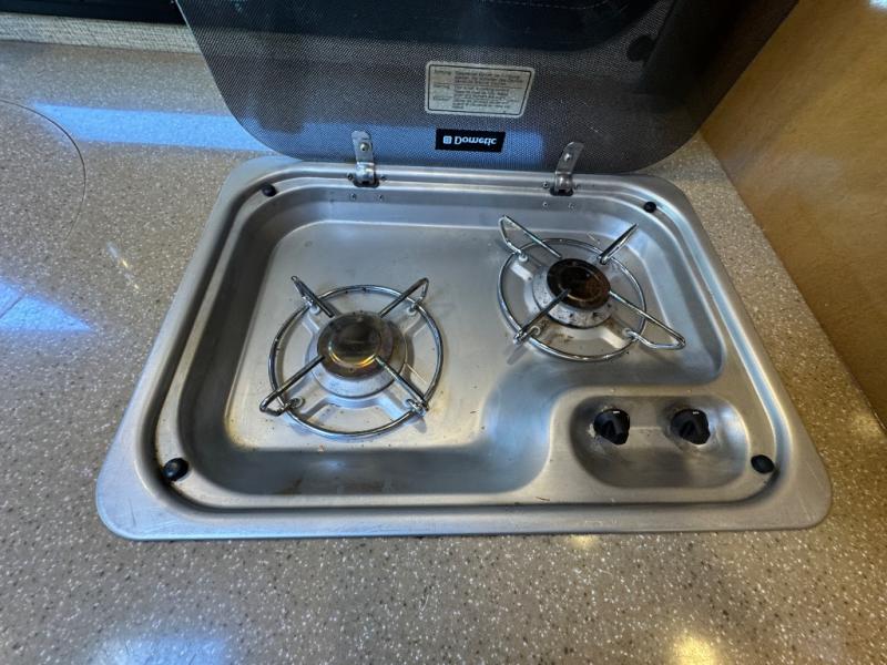 A Dream dinette with overhead cabinets for storage fills the motor homes single slide. This dinette can be converted for extra sleeping space measuring 42" x 72". You can choose to replace the dinette with the optional sofa with air bed measuring 54" x 74" with pedestal table. Someone can even get a good night's rest in the bunk over the cab.