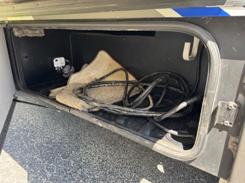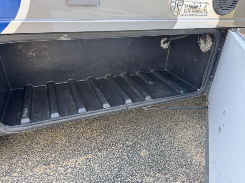 In the rear of the Citation Sprinter 24SA you will find a corner bathroom including a shower, vanity sink, medicine cabinet, and a toilet. There is a closet just outside the bath. The opposite rear corner holds a full size bed with overhead cabinets and a 24" LED TV for your enjoyment.