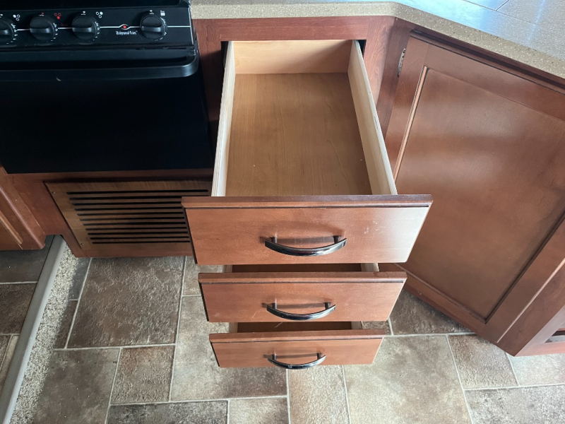 Full-Wall Slide • Private Bedroom • Cab-Over Bunk • Residential Refrigerator • Onboard Generator